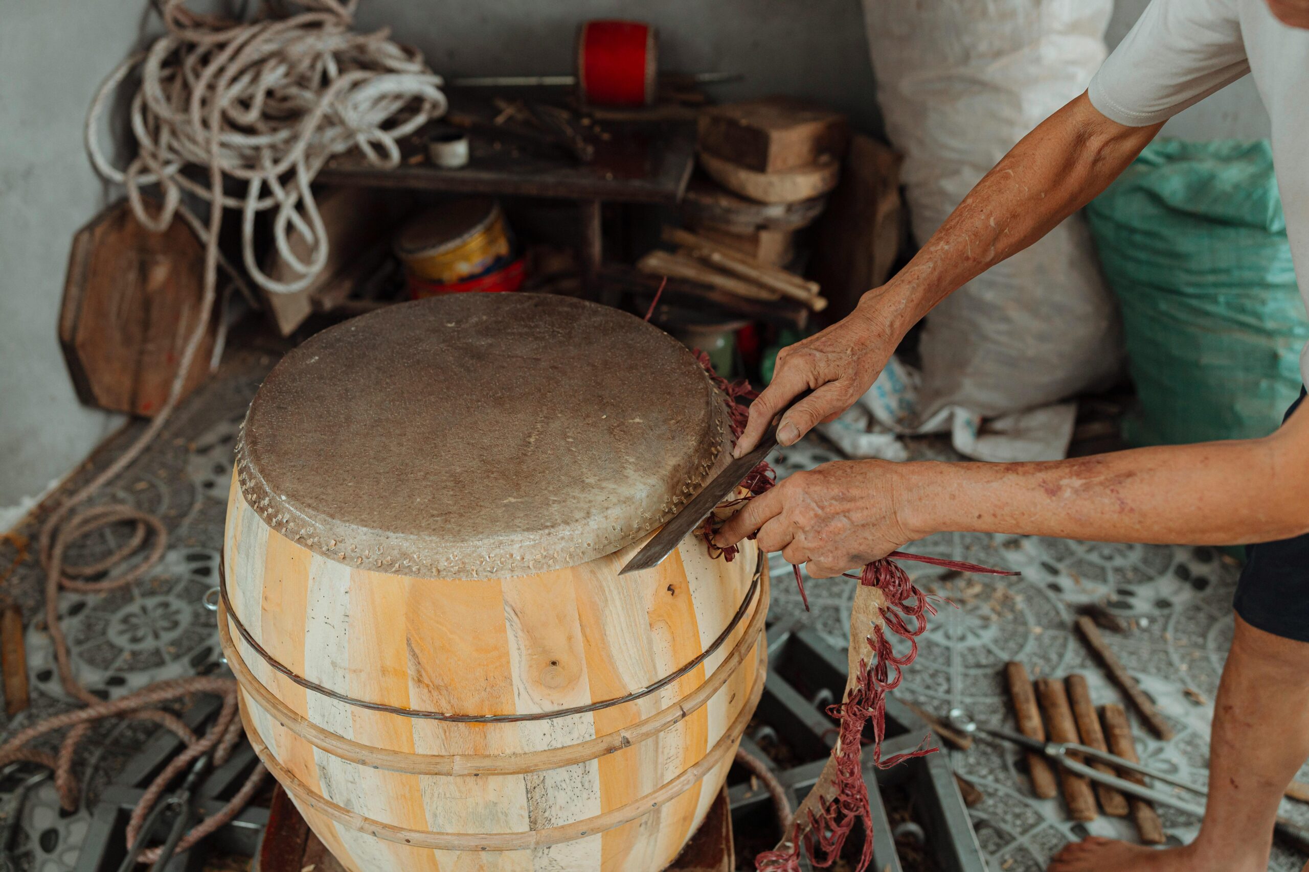 Antes de cortar ou colar, o artesão define qual som quer obter. Isso influencia o tamanho, a forma e os materiais escolhidos. A afinação dos instrumentos, mesmo que rudimentar, também é planejada desde o início.